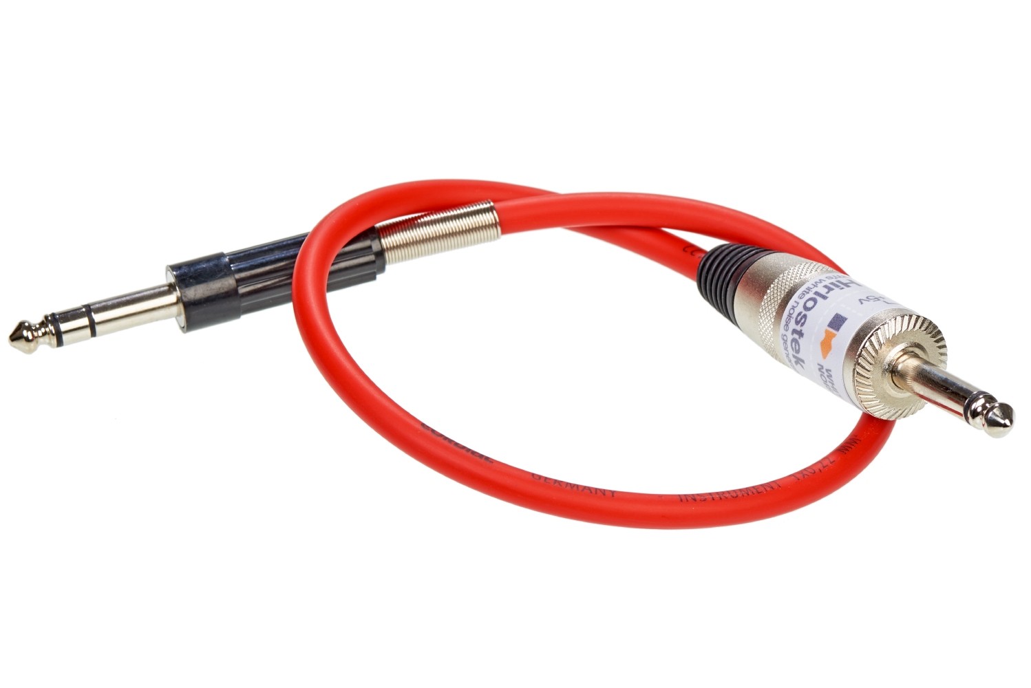 The Hirlostek needs to be provided with a 5V voltage, for instance at the tip of a expression pedal socket. A circuit inside of the bigger plug generates a bright digital noise you can use as audio or modulation source. The narrower plug carries the noise signal and is to be connected either with an audio input or a CV input. Hand made, military quality due to good Neutrik jacks.