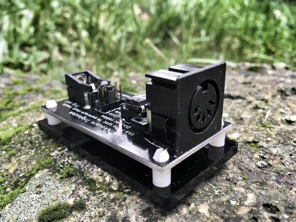 The Triglostek is a self-powered DinSync24 to trigger converter, to sync an eurorack to a DinSync24 device. It needs no extra power supply.