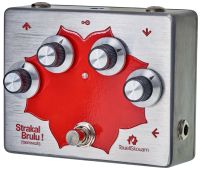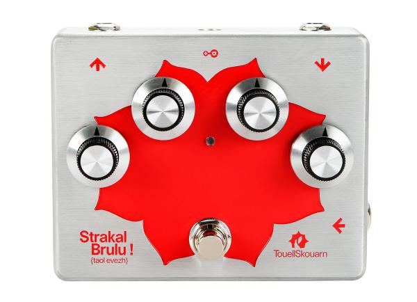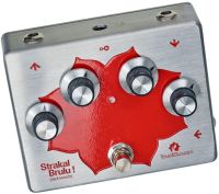 TouellSkouarn Strakal Brulu is a fuzz pedal with CV-input. Very characteristic for the pedal's sound is that the fuzz amount is coupled to the feedback. The more fuzz, the more feedback - the Strakal Brulu can get pretty nasty and it screams a lot at high fuzz settings and low input level. The fuzz amount can be voltage controlled, with an inverse attenuator. Input and output levels can be set separately and especially the input level affects the Strakal Brulu´s behavior a lot.