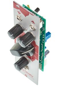 This boutique module is hand-wired, has a beautful laser-etched perspex faceplate and the big cutoff knob is vintage. As the module is inductor based it can easily pick up hum and electric fields so keep it away from the power supply transformer.